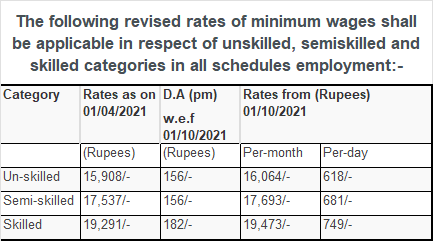 The following revised rates of minimum wages shall be applicable in respect of unskilled, semiskilled and skilled categories in all schedules employment:-